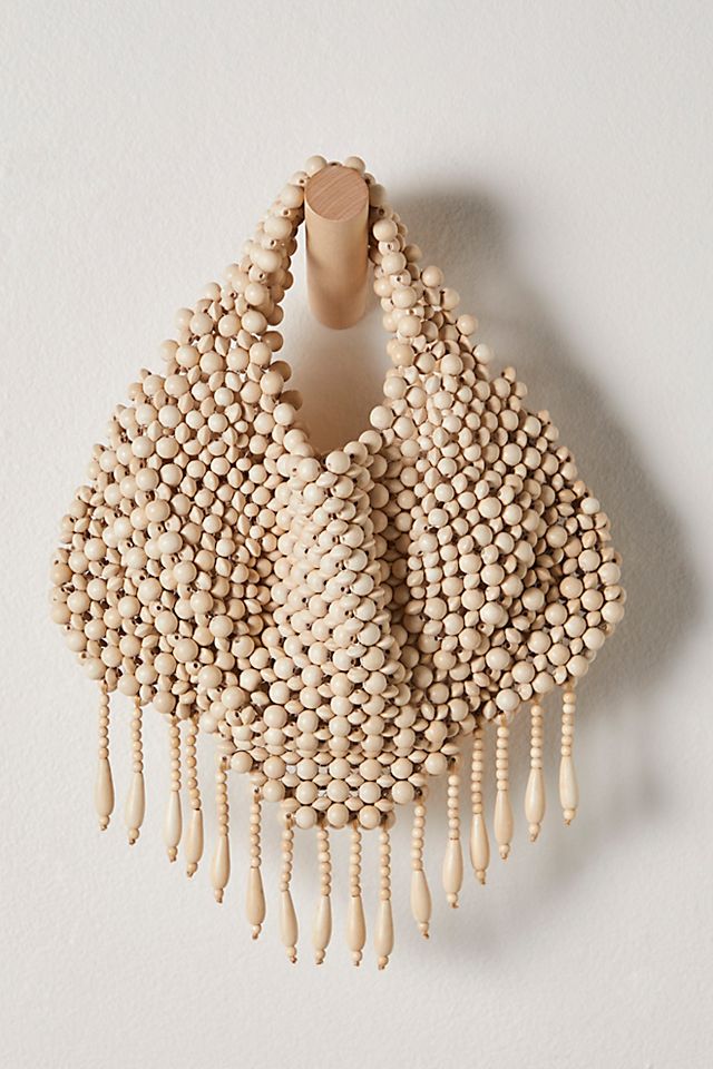 Features: Clutch silhouette, wooden beads, fringe bottom hem, fixed shoulder straps, slouchy style